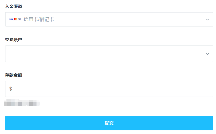 • 请选择存款账户,输入存款金额(USD),点击“提交”。