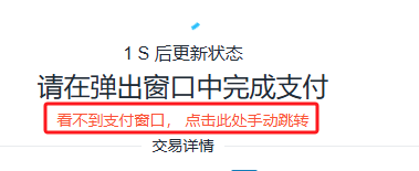 • 如果页面未自动跳转,请点击“看不到支付窗口,点击此处手动跳转”。