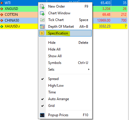 - 将鼠标悬停在需要查询的交易品种上方,点击右键。
