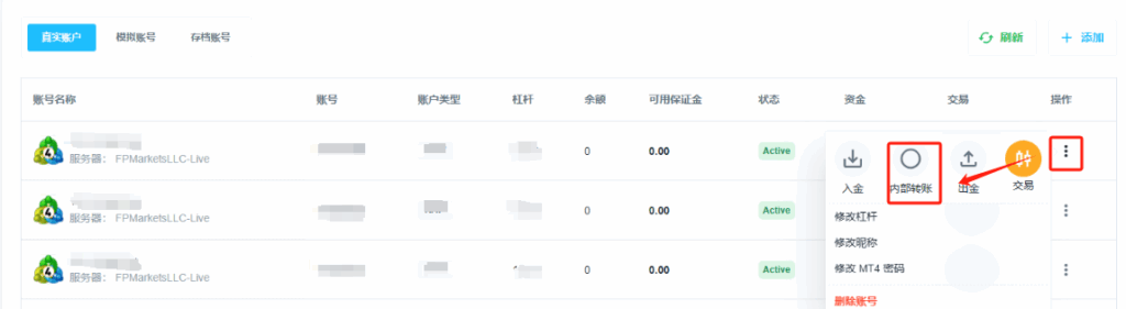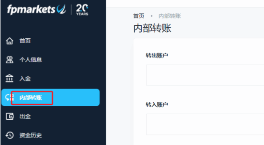 FP Markets 账户内的内部转账功能允许用户在同一注册邮箱下的不同交易账号之间转移资金。