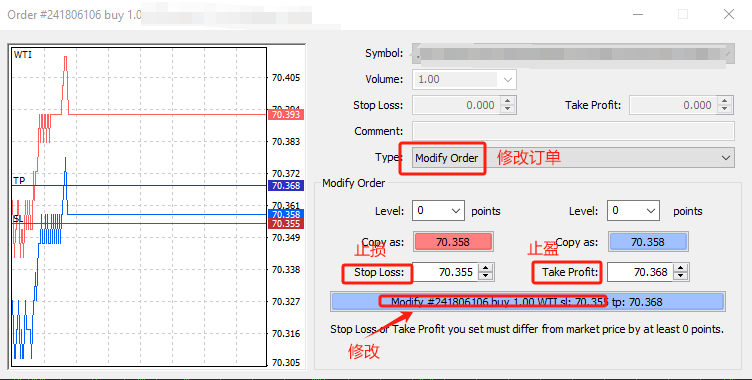 - 更改仓位的“止损价”或“获利价”。