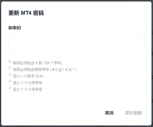交易账号密码是您用于登录交易平台(MetaTrader 4 与 MetaTrader 5)的密码,旨在保障您的交易安全。
