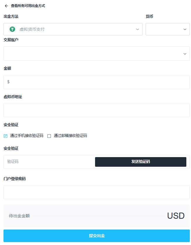 • 请选择交易账户,输入取款金额、虚拟币地址。